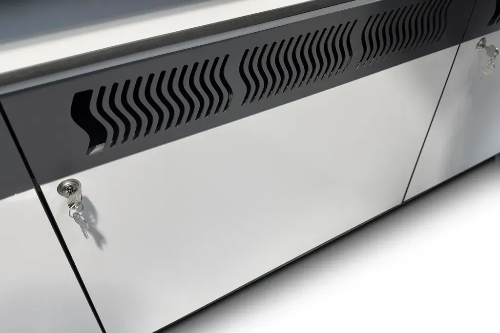 A standout innovation from LundHalsey Labs is the integrated 43″ motorised touchscreen display, mounted on a precision sliding track. It glides forward and rearward and allows exact viewing angle adjustment to enhance operator visibility, reach, and interaction—adapting instantly to individual preferences. This ensures better situational awareness, operator control, and comfort during high-pressure workflows.